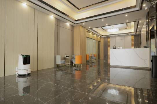酒店(全智能型酒店)开业啦,酒店内配有电动窗帘,巨幕投影,智能马桶等等,房间内有小度智能语音助手,通过小度可以直接唤醒房间内设备,躺在床上语音就可以操控房间啦。