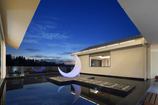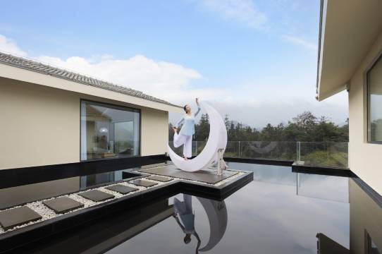 室内设计装修非常棒,清爽原木风格,360度大面积的落地窗,绿树青山环绕房间,风景令人惊艳,上下楼均有阳台,阳台外就是森林,伫立令人沉醉。