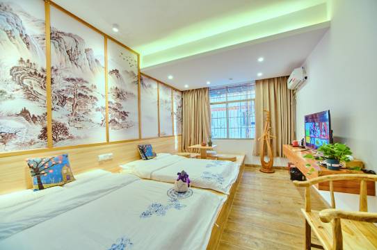 离景区大门 特别近,很方便,老板娘特别热情,很贴心的给出游玩路线,特别详细,还可以帮忙定门票,房间很干净,适合家庭出游