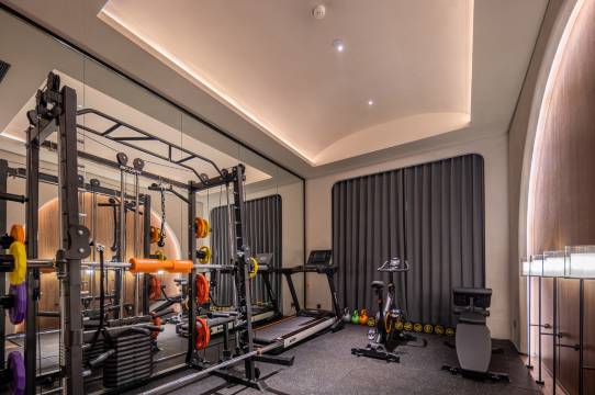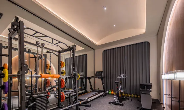 酒店灯光设计很好 细节方面下了很多功夫 一楼还有健身房 健身器械很多 还配置了小份量洗衣液 坚果投影 戴森吹风机。