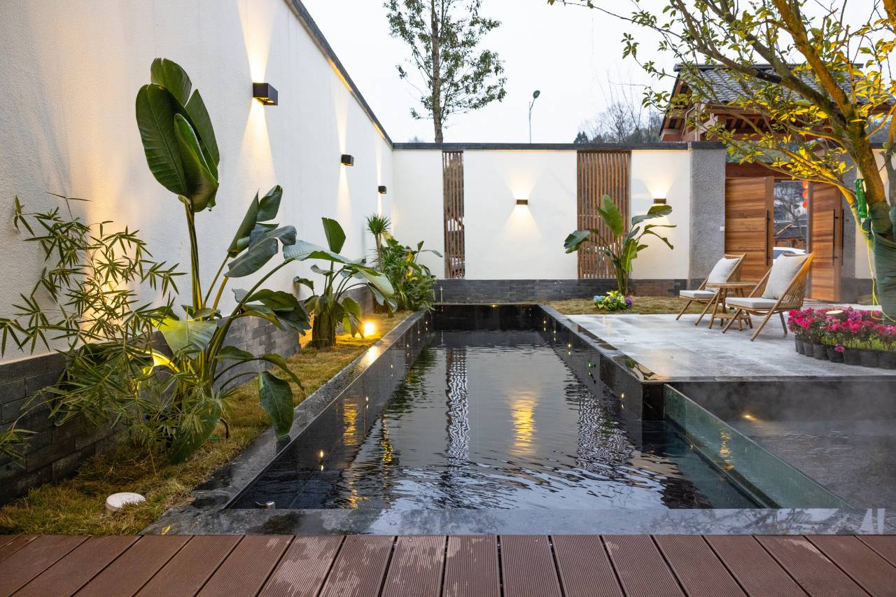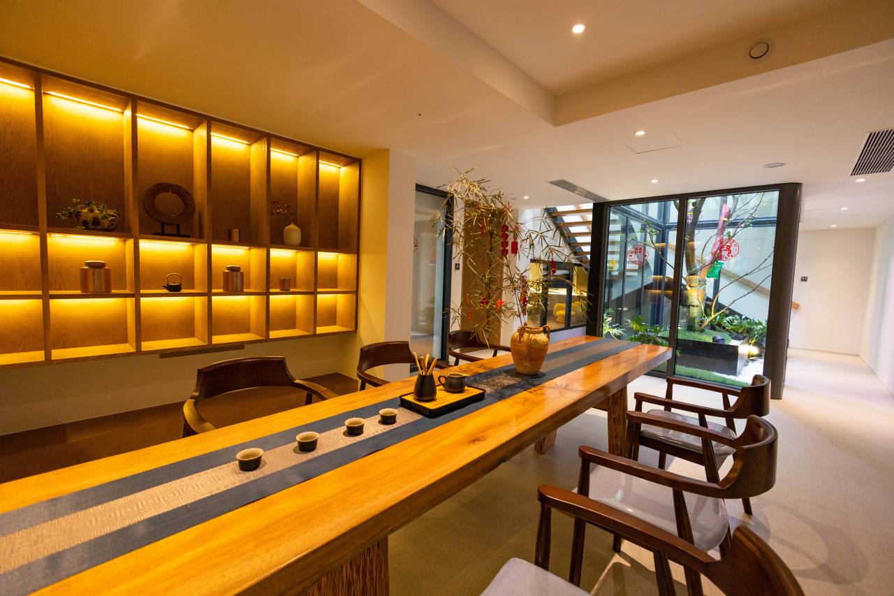 茶语溪悦境度假民宿位于国家4A级蒙顶山风景区山下,十里梅香康养度假区内,花间堂对面,独栋花园温泉别墅,上景区只需要20 分钟车程,到雅安市区10分钟,5分钟步行就到达“梅花谷精灵儿童乐园”,8分钟可以到特色美食步行街“甘露坊”享受各种当地美食,到高速路口5分钟车程。30分钟到达碧峰峡野生动物园。 全屋地暖中央空调,小度语音智能客房系统,新风过滤除尘系统,中央热水系统,.其中一,三号院子包院带全套家电设备的别墅私人厨房,全新机麻房,品茶室,专业级音响设备的影K室。户外私汤庭院恒温循泡池,室内多功能运动馆,运动地板篮球,街机,台球,乒乓球,瑜伽等,可以小型培训会议