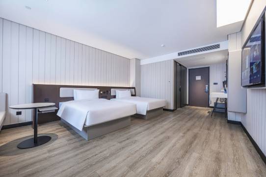 订了两张1.3米的双床房,前台小姐姐帮忙升级成两张1.5米的房间,给个好评。酒店比较新,干净卫生。楼下有自助洗衣房,十分方便。