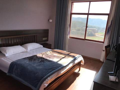 距离观鹤大坝不远走路15-20分钟,吃的好吃还便宜,有电热毯。挺干净。可以和老板商量请老板开车去。客栈就在在地自然的右边,很好找。居然还有地下车库。有电热毯。