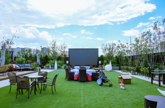 做为国潮文化庭园式美食酒店,300平米的露天花园,电子巨幕、星空酒吧,草坪帐篷,俯瞰昌平全景,在一众高楼之间的屋顶花园微风拂面,蓝天白云略过远处的山间,喝上一杯手磨咖啡咖啡、武夷老枞或小酌漫醉,此刻的人生岂不美哉乐哉?