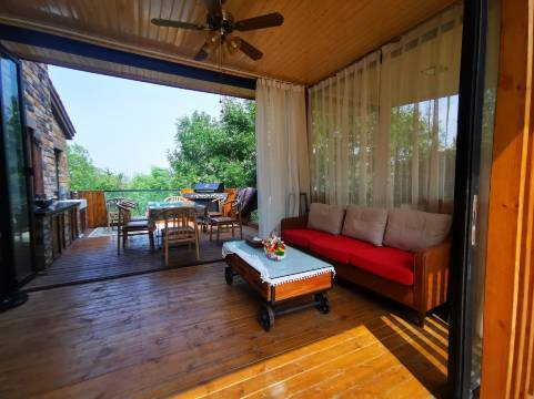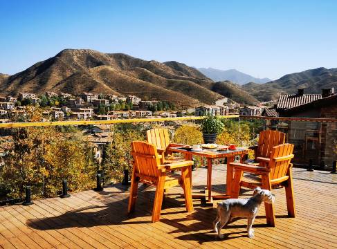 院落为300多平上下三层花园和观景平台,可以喝着下午茶遥望长城,夜晚可以边乘凉边看星星,还可以在凉亭的沙发上懒懒的晒太阳,或是在海棠树下静静的看一本自己喜欢的书,喜欢撸串的可以在庭院烧烤。喜欢健身的庭院内设有跑步机,动感单车,夏天客人可以到采摘区,免费采摘自己喜欢的蔬菜水果,保证无农药,无化肥,咱们现摘现吃。
