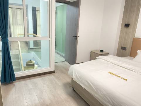 酒店式公寓的房子,里面是个两居室的户型。一楼客厅有个电动麻将桌,很不错。二楼有卧室。房间还算干净整洁,服务很热情。房间看着还很新的。床垫个人觉得有点硬。
