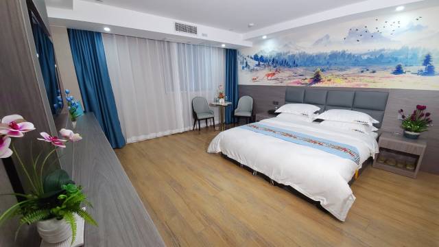 这次入住体验真的非常愉快!和朋友在这里住的玩的太舒服都不想回去了,不带一点夸张。酒店设施设备很齐全,一楼可以买到很多用品特别方便,老板一家人都很热情,酒店服务非常贴心用心。而且卫生干净,房间温馨宽敞,吹着空调睡觉很舒服,一次性用品准备的也很齐全,订的是精致大床房,面积很大,休息很安静。总之,卫生无可挑剔真的很干净,赞赞赞!环境也也给到5分,房间的布局是我很喜欢的风格,简约清新,住在这里心情都变好了。地理位置较好,周边交通很方便,根本不用担心出行问题。真是性价比很高的一家酒店,总之真的入住体验极好,酒店的各项设施和服务都很棒!