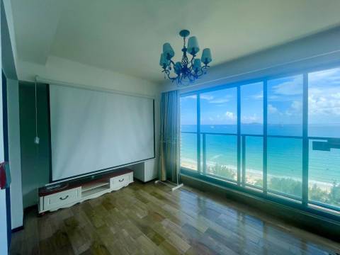 一线正面海景套房,两房一厅,全景落地大玻璃,讲究的就是舒服,楼下就是海滩,早中晚随时270°看海景。