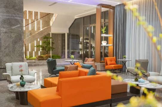 环境还行 房间整体设计不错 停车场大方便停车!前台服务态度好,又离万达商圈近,旅游出差不错了选择!!!!