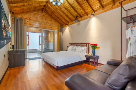 性价比很高,房间干净整洁,每个房间都有单独泡池,特意避开国庆高峰出行,没有楼梯,适合家里有行动不是那么方便的老人出行。因为家里老人需要用拐杖,特意订了他们家。停车方便,户外泡池干净,游泳池水温合适。下次还会再去。不足在于房间隔音有点差,早餐味道还有进步空间。