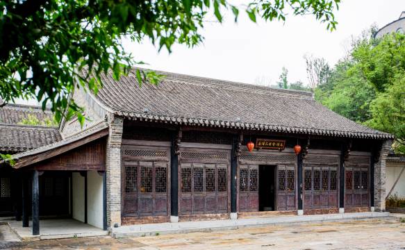 大厅结构高瘦,装饰玲珑,木刻砖雕十分精细,屋面轻巧,造成了明秀轻松的外观,在丛林溪流映照下,予人以明快的感觉,素雅清淡,韵味无穷。