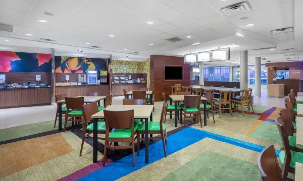 您可以到服务布鲁斯堡万豪费尔菲尔德套房酒店住客的杂货店/便利店随便找点吃的。免费全套早餐供应时间为:周一至周五 06:30 至 09:00,周末 07:00 至 10:00。