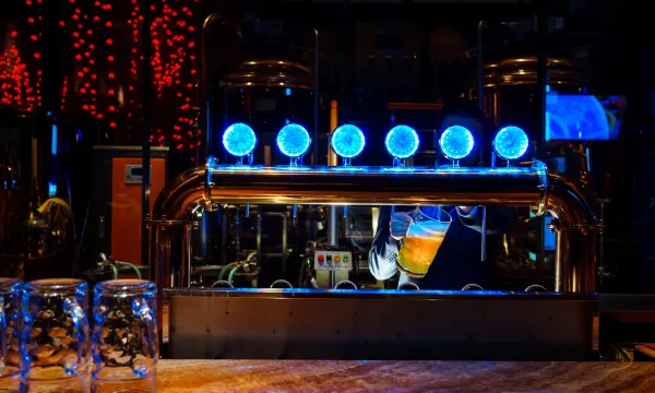 拥有充满个性化的精酿啤酒烧烤音乐餐厅,自助餐厅,纯正西餐厅,精美放题式日料餐厅,以及带有卡拉OK的包房就餐形式。