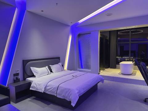 房间很大很大 对面就是万达 逛街也方便 电脑玩起来也很流程 最主要的是头一次看到电竞酒店有浴缸可以泡澡 值得推荐