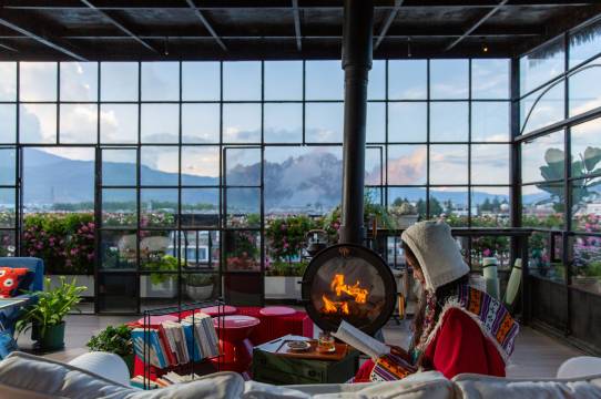 从开业以来,来丽江必住的酒店。房间布局合理,卫生干净。高一点的楼层可以躺在床上看日照金山。顶楼的花园咖啡直面雪山,花海更是越来越漂亮。冬日晚上可以点一杯咖啡围着火炉聊天。早上可以点一杯奶茶看日照金山。