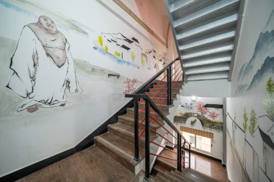 一进门有点被惊艳到,房间很宽阔,有茶室,智能马桶,装饰也很特别,壁画都是老板女儿画的,老板还有另外一间中式园林风格大宅可以拍汉服,由于赶时间,送的汉服拍摄还没来得及体验,期待下次再来。