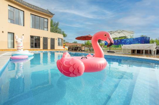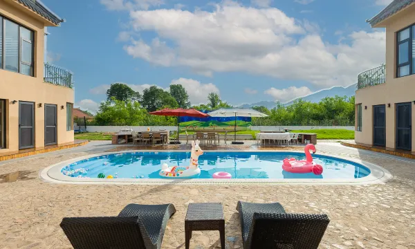 民宿拥有独立超大院落,地理位置优越,独立静谧,不扰民,私密性强。院内具有10米x5米x1.5米超大独立泳池,设有私汤及饮茶区,两个烧烤台及烧烤架,草坪休闲区,可露营及室外投影,咖啡休闲,2个独立阳台可眺望远景。民宿设有开放式厨房(提供基本厨具和调料)、配备电饭锅、冰箱、热水壶,设有消毒碗柜、吧台区、用餐区,顾客可自行做饭也可提前预定农家特色美食。
