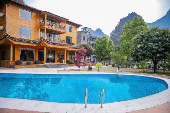 酒店位于阳朔县白沙镇1400多年历史的旧县古村落,酒店庭院千平,泳池,餐饮,一应俱全。更有榫卯结构独栋小楼拍照更是出片。酒店四面环山无遮挡风景,居住于此,能听清晨鸡鸣、犬吠乡野,看日落长河、竹影清潭,寻找人生真谛。