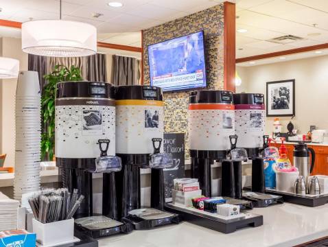 您可以到服务诺克斯维尔 - 市中心希尔顿欢朋套房酒店住客的小吃吧/熟食店随便找点吃的。每日 06:00 至 10:00 提供免费的自助早餐。