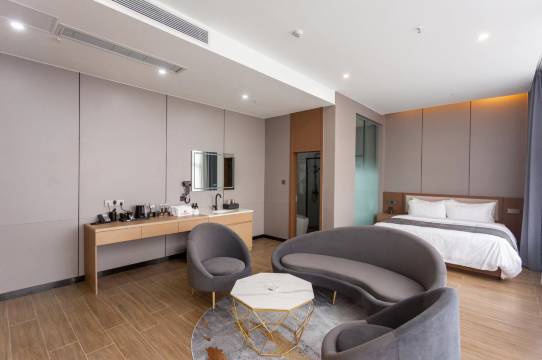 悦禾国际酒店坐落于绵阳市梓潼县民俗文化创意园,紧临四川文化艺术学院。距两弹城、七曲山大庙景区10分钟车程。酒店是一家集餐饮、住宿、娱乐、婚宴于一体的综合性星级标准酒店。酒店拥有三大百万级沉浸式婚礼堂、特色中餐、高档包房、全智能客房、地中海咖啡厅、园林式茶饮、豪华私人订制PARTY、专用地下停车场等配套设施及服务,是您来梓潼下榻的首选之地!