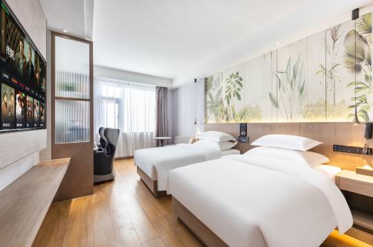 酒店设施配套很齐全,有洗衣机烘干机24小时免费使用,还有茶歇吧,饮茶区!临时更换成了双床房,一进门也很惊艳房间干净明亮,晚上也没有噪音!出去玩问了下小姐姐周边有没有推荐景点,前台小姐姐还贴心的准备了详细的游玩攻略!被这家的贴心细心感动。远远超出了这个价值下次入住还选这家