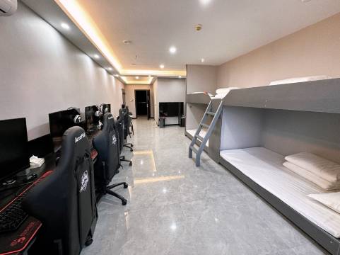 五人间挺nice的也挺爽,爱了爱了,玩了一晚游戏又能休息,椅子也舒服呢,电脑不卡很合适,干净卫生