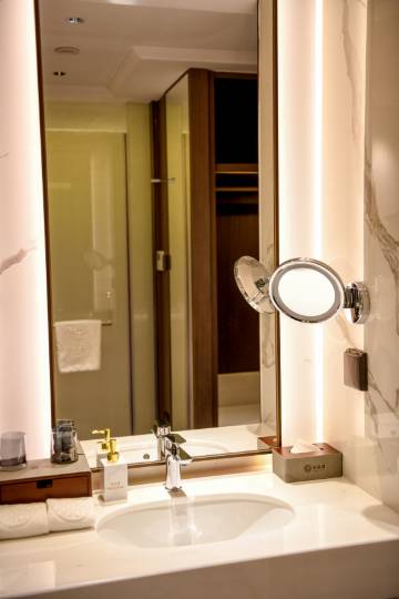 酒店卫生非常干净,设施很好,大金中央空调,戴森吹风机,卫生间淋浴间设施都是的德国唯宝品牌的,服务人员态度亲切专业。从入住到离店体验都很棒,下次还会选择这里。强烈推荐!