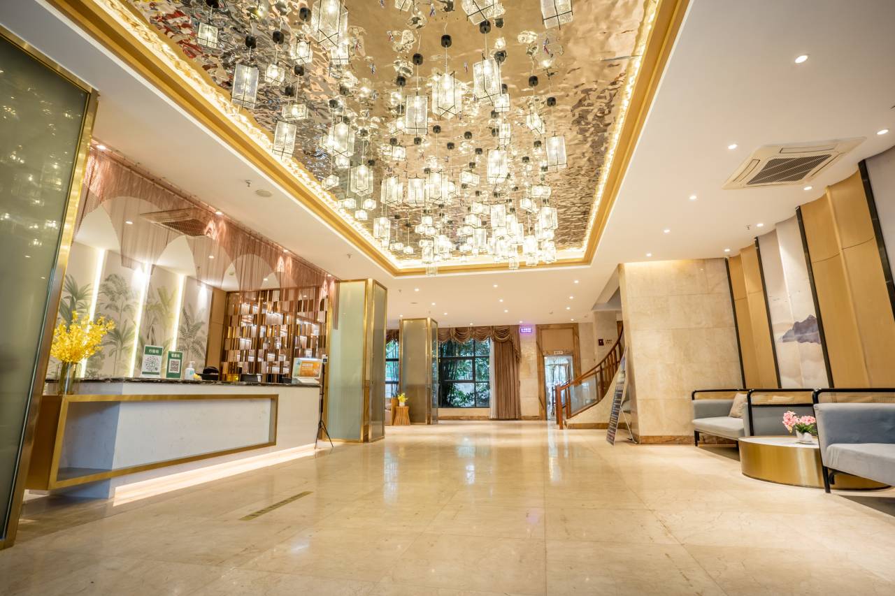 酒店整体装饰豪华典雅,客房舒适温馨,房型种类多样,高清投影,独立卫浴,梦百合零压枕垫等优质床品及设备设施,周到完善。