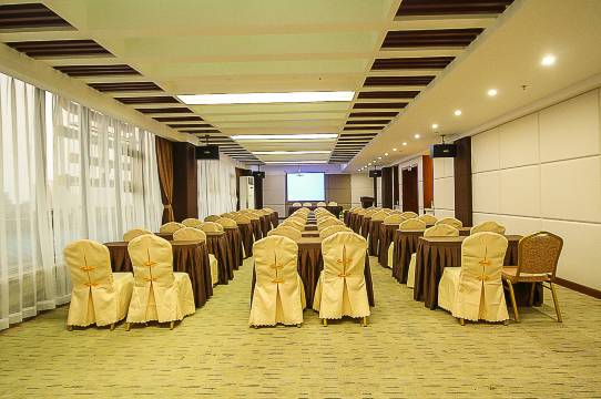 酒店附设对外主打本地特色菜品的椰岛人家酒楼,包厢大小齐全,可接待团队用餐。无柱100平方会议室,配有高清LED高清显示屏及音响系统的会议室。可满足宾客商务会议等多元化的消费。
