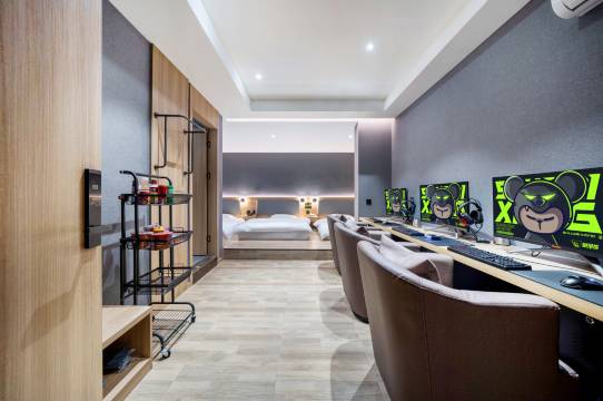 和朋友开黑超爽,网速稳、设备新,环境氛围好。前台服务贴心周到,办理入住高效,态度特别好,聚会开黑首选!
