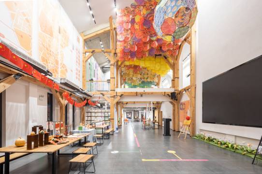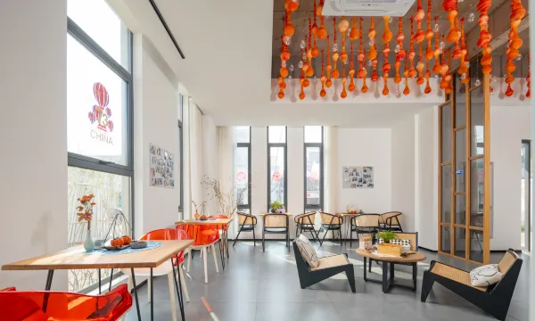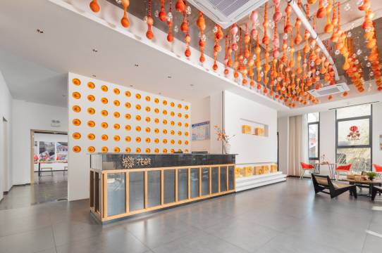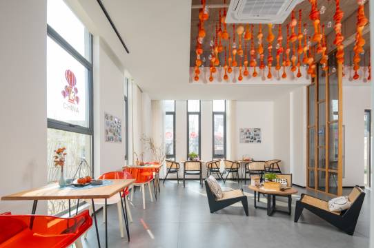民宿坐落于兰溪市黄店镇老街上,民宿外观采用轻工业风设计,依偎乡间,而室内使用明亮跳脱的橙色搭配,时尚的ins简约风和大量的原木元素,构建出了这个充满超高颜值的浪漫艺术空间,配置茶室、文创区、手作体验区、棋牌室、书吧、庭院烧烤等各个休闲设施。民宿的每间客房都以柿子命名,代表美好祝愿,住在民宿,每顿的餐食都是非常值得期待的,食材均取自乡野之中,追求最天然的口感与柿子作为创意主题相结合,食物的口感让人恋恋不忘。