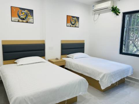离西站很近,住店需要有人带领才知道在哪里,因为那个入口还要再下去才到酒店的楼,路旁边那个入口走上去看到前台。很多外卖从旁边的路开进来,不从那个高阶梯走。没有独立卫浴,所以住的时候要注意这点。很像以前住过的群租房。有个阳台,阳台外面车水马龙,如果害怕响声的就不订了,我个人感觉还好。有个落地窗,但那个窗来不了,不要用力开,卡死了。窗正好卡住了开窗的位置。被子稍微有点薄。有电梯,走上去的那个铁楼梯要注意,别踩空了。如果太晚了到海口,不方便坐公交可以先在这里住下,还是可以的