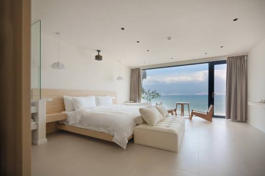 整体再见到的第一印象来说是很不错的,从门口到房间会比较温馨,门口小院也可以休息。在房间可以直接看到海景,阳台也有座椅可以看着海景看看书,阴天的话可能感官体验会稍微差点意思,但好在来的下午赶上了一会出太阳的时间,在有着夕阳绝景的情况下,这间房的整体体验就更棒了,旅途计划有看夕阳