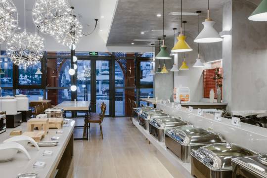 环境很有特色,工业风老厂区的感觉,建筑内部全部翻新过,房间很大,空调给力。前台态度很好,还给升级了房型。在这个价位来讲,早餐算得上非常优秀。