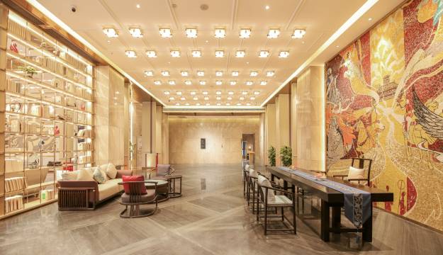 酒店位于乐安县的中心区域—四九广场正面对,毗邻CBD商圈乐安E中心;紧邻乐安四小、乐安二中;交通便利,10分钟即可到达乐安县汽车站。酒店楼体为地标性建筑,整体高度约90m。抚州乐安开元名庭酒店是一家集客房、餐饮、宴会、康娱于一体的高品质商旅酒店,是乐安高星级综合服务类酒店。酒店以唐风美学、品质格调的装修风格,结合盛世之下、追求不凡的设计理念,打造曲水流觞、群贤毕至的综合国风体验空间。