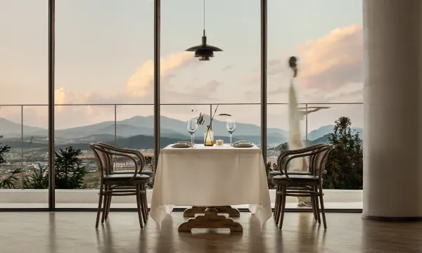 很喜欢酒店设计风格,融合了地中海纯白外观与室内诧寂风设计,度假感很强,非常舒适。酒店整体面西,可边泡温泉边观夕阳。可惜此时雨季,云层密布,啥也看不到。酒店的柒柒旅拍团队非常专业,修片也漂亮,推荐。