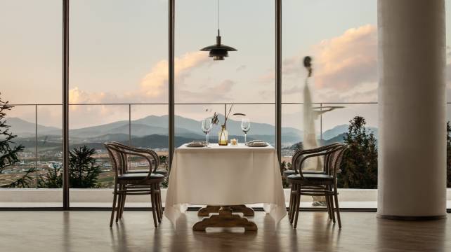 酒店拥有玻璃观景台,红酒雪茄吧、壁炉休闲区、水吧、网红打卡旋转楼梯、茶室、酒吧、餐厅、棋牌室、室内高尔夫、斯诺克室、会议室、户外健身房、围炉夜话等多功能厅,每一处即可打卡拍照。酒店的所有客房配备法国进口洗护用品、戴森吹风机、智能马桶、智能语音控制系统、独立温泉泡池及东山特有碳酸温泉水,拥有超广角观景视野落地窗。