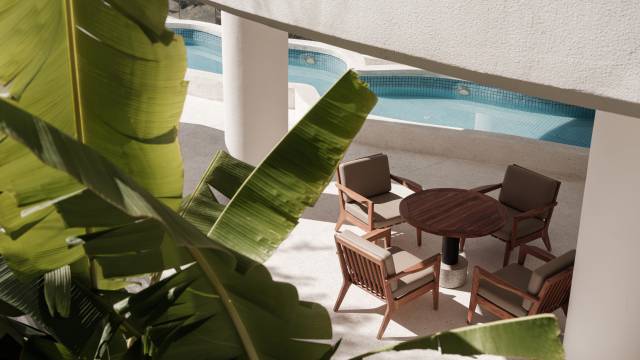 整体建筑由设计师团队打造,外观为白色搭景,以地中海度假风格与侘寂元素完美结合,拥有腾冲最广的月牙形泳池,移步换景,花木扶疏,相交辉映。