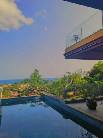 三层高档别墅,环境优美,阳台面对大海,带泳池,床品干净,设施齐全,每天都有人来打扫,免费矿泉水供应,一家老小都非常满意,推荐