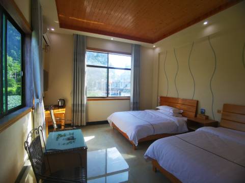 房间干净卫生,舒适温馨,屋外的自然景观非常不错,养眼漂亮。店家服务热情周到,还接送我们出入景区。总之性价比非常不错。
