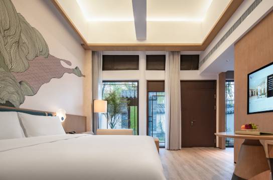 酒店的地理位置堪称完美,就在百花洲历史文化区里,过马路就是大明湖,步行就能到曲水亭街、芙蓉街这些景点,逛吃游览都格外方便。走进酒店就像踏入古画,古建筑翻新的庭院里雕栏玉砌,木质色调的装潢透着古今交融的韵味,房间宽敞舒适,部分房型推窗就能看见垂柳拂湖的美景,晨起伴着湖风醒来,惬意极了。