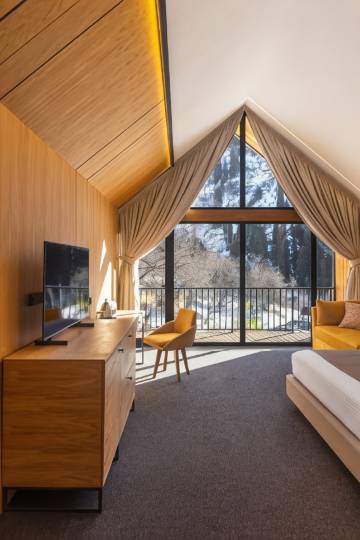 酒店环境很美 房间可以看到雪山 房间还有私人桑拿房
