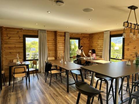 这个青旅还是很棒的,床品很干净,跟星级酒店的感受一样清洁干爽,卫浴很多间,所以没有遇到需要排队洗澡上洗手间的问题,停车场很大,重点是就在雪山下,太美了,去徒步,做直升机也很方便