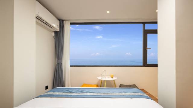 民宿就在海边,真正实现了“推窗见海,卧听潮声”。从民宿的小院子走下几步台阶就是一片私密的沙滩。傍晚看日落,清晨看日出,方便得像在自家后院一样。房间布置得温馨又精致,一尘不染。巨大的落地窗正对大海,躺在柔软的床上就能将无敌海景尽收眼底。
