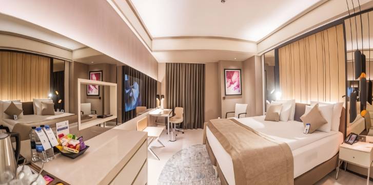 贝伊尔钻石酒店及会议中心坐落于科尼亚中心地段,步行前往塞尔柱塔只需 4 分钟、前往库尔塞特购物中心需 7 分钟。 此豪华酒店距离因杰米纳雷博物馆 1 英里(1.6 公里),距离瓷砖博物馆 1.2 英里(2 公里)。