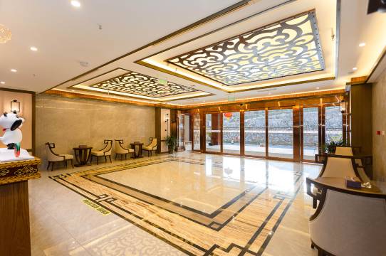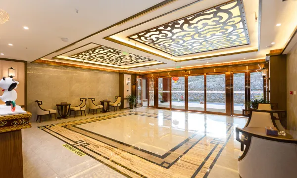 酒店内部装修以羌文化的羌绣、羊头、碉楼等为主要元素,设计典雅精致、简洁大方,民族特色浓郁。设计充分体现羌文化原生态环境和羌民族生息特点,酒店餐饮娱乐处体现除羌族生活风貌特点,是一处了解、认识羌族风情的舒适驿站。