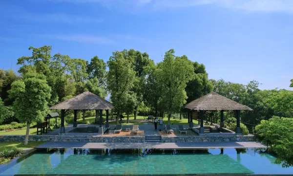 酒店位于溧阳市戴埠镇南山竹海地区,“涧谷”两字取自金·党怀英《过棠梨沟》诗“地僻人烟少,山深涧谷重”,两句短诗形象地描绘了涧谷的意境之美。