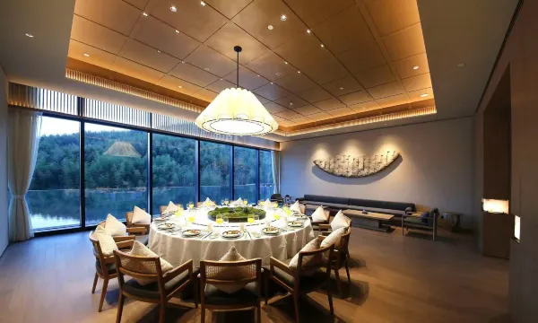 酒店设计理念:用现代化的设计语言诠释东方传统文化。酒店由新加坡JSA集舜建筑设计事务所查翔博士主持设计,室内设计由WJID维几设计总设计师黄全领衔,设计师利用自然的材料 、质朴的线条将室内外有机结合,风格独特、奢华时尚。
