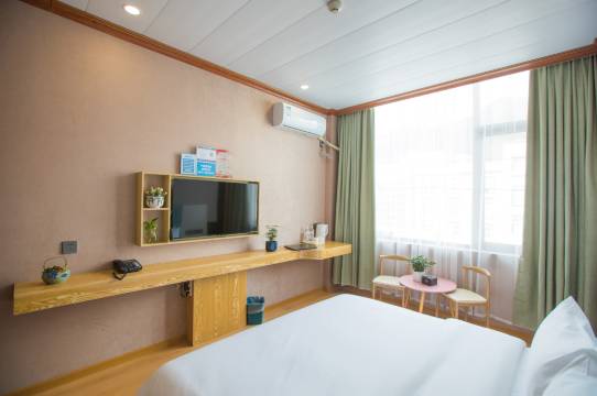 服务非常棒,热情给我们介绍吃的景点,有问题及时处理,位置非常棒在市中心,客运站,去机场火车站都可以在旁边坐车,景点也可以位置非常不错,有停车场免费停车,卫生干净整洁,房间光线好舒服,床品好,设施设备齐全有电梯,非常不错,环境舒适景色很美,对面就是步行街吃饭购物特别方便。推荐入住。