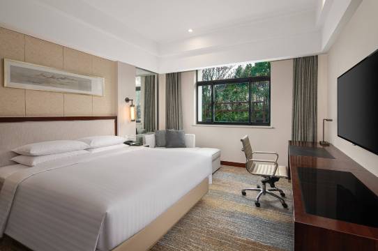 办理入住非常高效,办理完入住,在看到我们带了小朋友一起出行,还贴心的送了儿童洗漱品和浴袍。前台员工非常热情,工作认真负责。酒店地下负一楼停车场还有充电桩,非常方便。前台还帮忙介绍了附近的景点,也告知了如何前往景点更方便。因为是下午到的,我们就选择自己打车去了鼋头渚,酒店距离景区不远,路上有点堵车。酒店是可以预约早晨去鼋头渚的大巴的,最好还是早晨跟酒店大巴去,可以直接前往景点不需要排队检票。酒店地理位置真的特别好,酒店就位于蠡湖边,吃了饭可以到湖边走走,景观非常棒,适合带家人一起出行。酒店内部景观也很漂亮还有樱花树。大堂一楼有小红帽咖啡,尝试了一下,总体来说跟星巴克味道类似,还不错。房间虽然不大,但卫生干净整洁。入住万怡还能使用隔壁万豪的泳池,这点很棒。虽然入住期间也因为房间有噪音产生了问题,但是后续酒店处理的非常迅速,也及时联系了我们,给予了解决方案,感谢帮我们处理问题经理,处理的非常满意。总体来说性价比还是很高的,以后再来无锡还是会选择这家酒店。